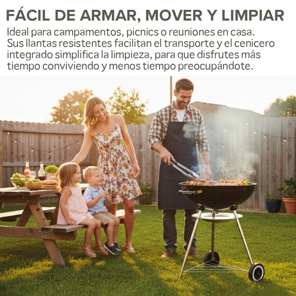 FÁCIL DE LIMPIAR: Una vez que termines de usar el asador, espera a que se enfríe, retira las rejillas, el carbón y vacía las cenizas. Lava con agua y jabón para eliminar los residuos y quedará listo para tu próxima parrillada.