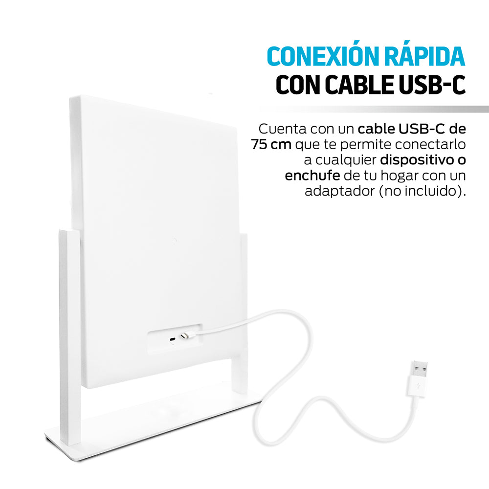 CONEXIÓN VÍA CABLE USB-C: Cuenta con un cable de 75 cm que te permite conectarlo en cualquier parte de tu hogar, o conéctalo directamente en cualquier dispositivo con puerto USB como el de tu computadora o  alguna consola para ahorrar energía