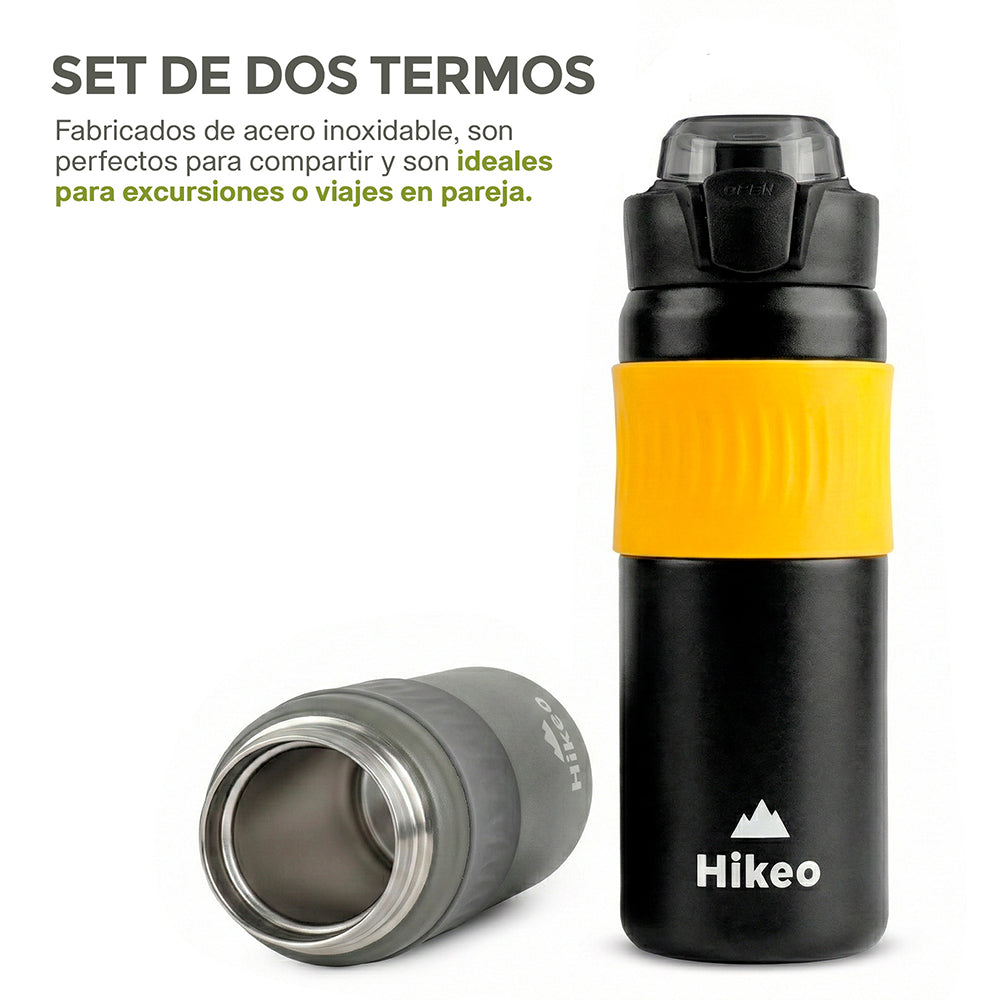 Fabricados en acero inoxidable, este set de termos de 580 ml destaca por su durabilidad y resistencia, siendo completamente libre de BPA. Combina una tapa hermética con una boquilla anti escurrimiento, ideal para mantener tus bebidas frías o calientes en cualquier situación. Su diseño ergonómico y colores modernos lo hacen perfecto para el gym, camping o cualquier actividad al aire libre.