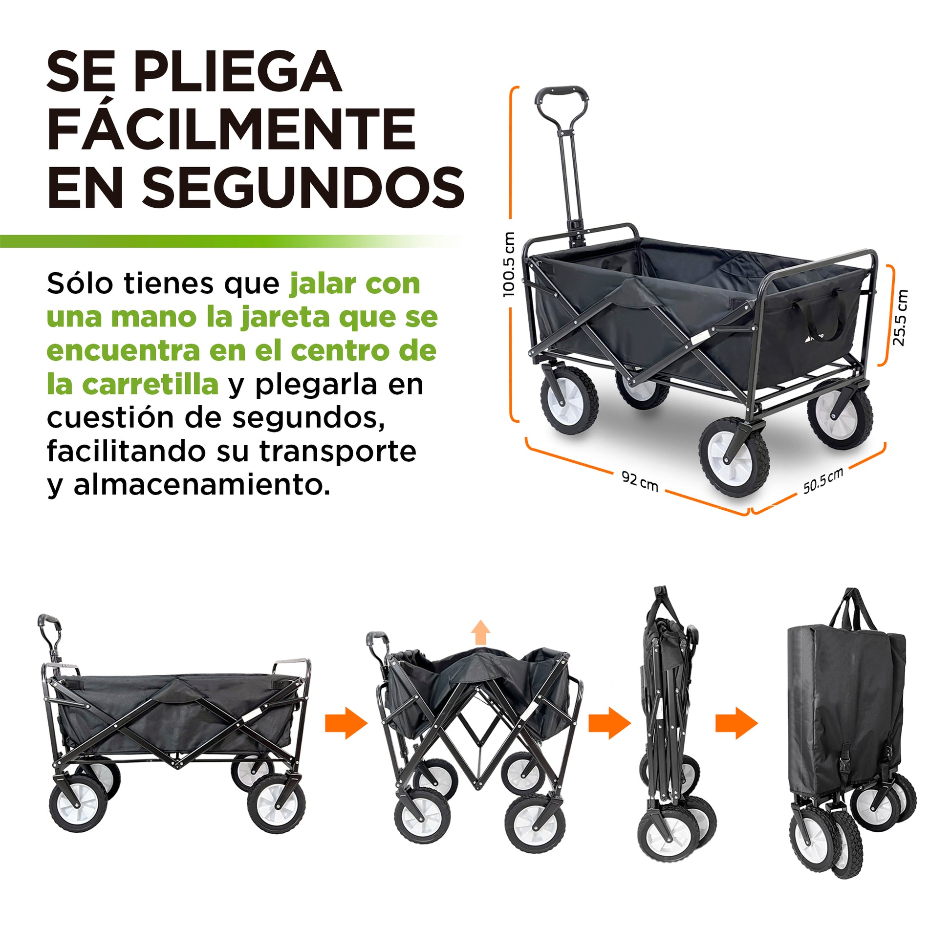 • LIGERO, RESISTENTE Y PERFECTO PARA EXTERIORES: Gracias a su estructura y diseño, esta carretilla plegable es una herramienta súper funcional para transportar fácilmente una gran variedad de cosas, ya sea en un día de campo, parrillada o en la playa. Llévala contigo a tus vacaciones y salidas con la familia o amigos